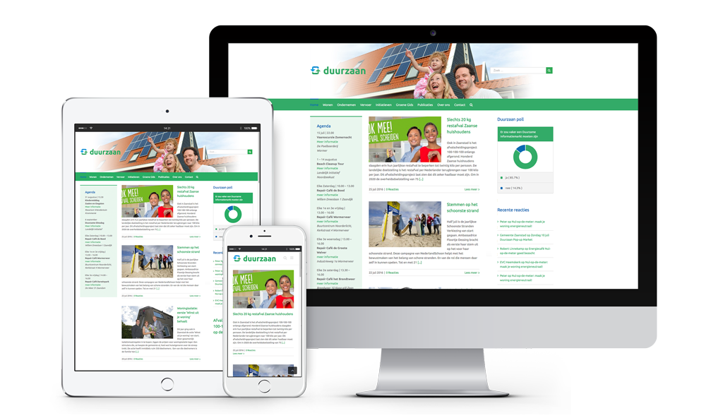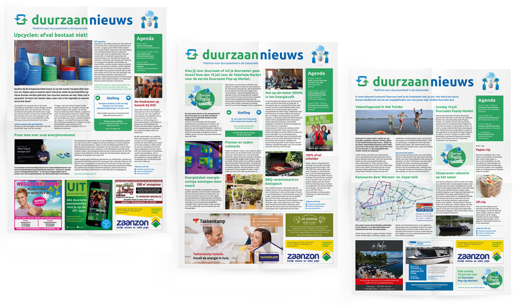 Maatschappelijk verantwoord ondernemen (MVO) is hot. Steeds meer bedrijven hebben aandacht voor een duurzame bedrijfsvoering. Uit kostenbesparing, als marketingtool of puur voor het behoud van ons milieu. Wij zijn een stap verder gegaan dan een elektrisch wagenpark en investeren in isolatie van ons pand. Net zoals we enkele jaren geleden de culturele sector in de Zaanstreek een boost hebben gegeven door het op de markt brengen van het magazine UITdeZaanstreek, hebben we nu – samen met partner Xpring – Stichting Duurzaan opgericht. Een platform voor burgers, bedrijven en de lokale overheid. Met als doel om te verbinden, informeren en enthousiasmeren teneinde de Zaanstreek (sneller) klimaatneutraal te krijgen. Naast de oprichting verzorgden wij het logo en de huisstijl (met mascotte), een online platform en de tweewekelijkse pagina in de lokale huis-aan-huiskrant. Neem vooral een kijkje op www.duurzaan.nl en laat je inspireren om duurzaam te leven!