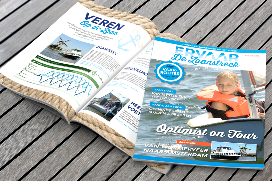 Naast het uitmagazine geven we ook ieder jaar in april het magazine ‘Ervaar de Zaanstreek’ (voorheen ‘Varen in de Zaanstreek’) uit. Dit zomermagazine wordt gemaakt voor alle toeristische opvarenden en schipbreukelingen in de Zaanstreek en uiteraard de eigen inwoners. Het magazine is 48 pagina’s dik en laat zien hoe mooi de Zaanstreek is en wat er op en rond de Zaan allemaal te beleven valt. Uiteraard vervaardigen we ook magazines in opdracht. Van ontwerp en tekstschrijven tot aan drukwerk en verspreiding. Benieuwd naar de mogelijkheden? Neem vrijblijvend contact met ons op.